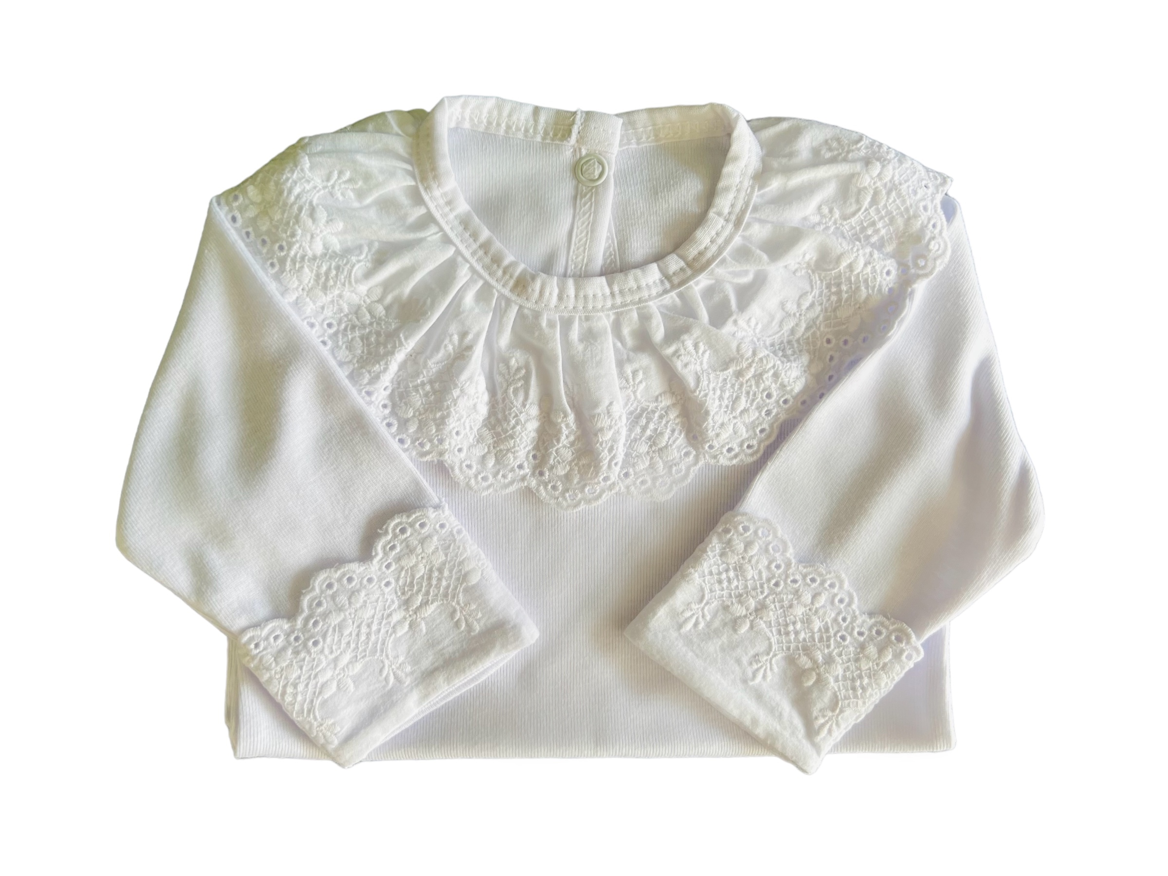Body Branco 100% algodão com gola e punho em renda. Perfeito.
