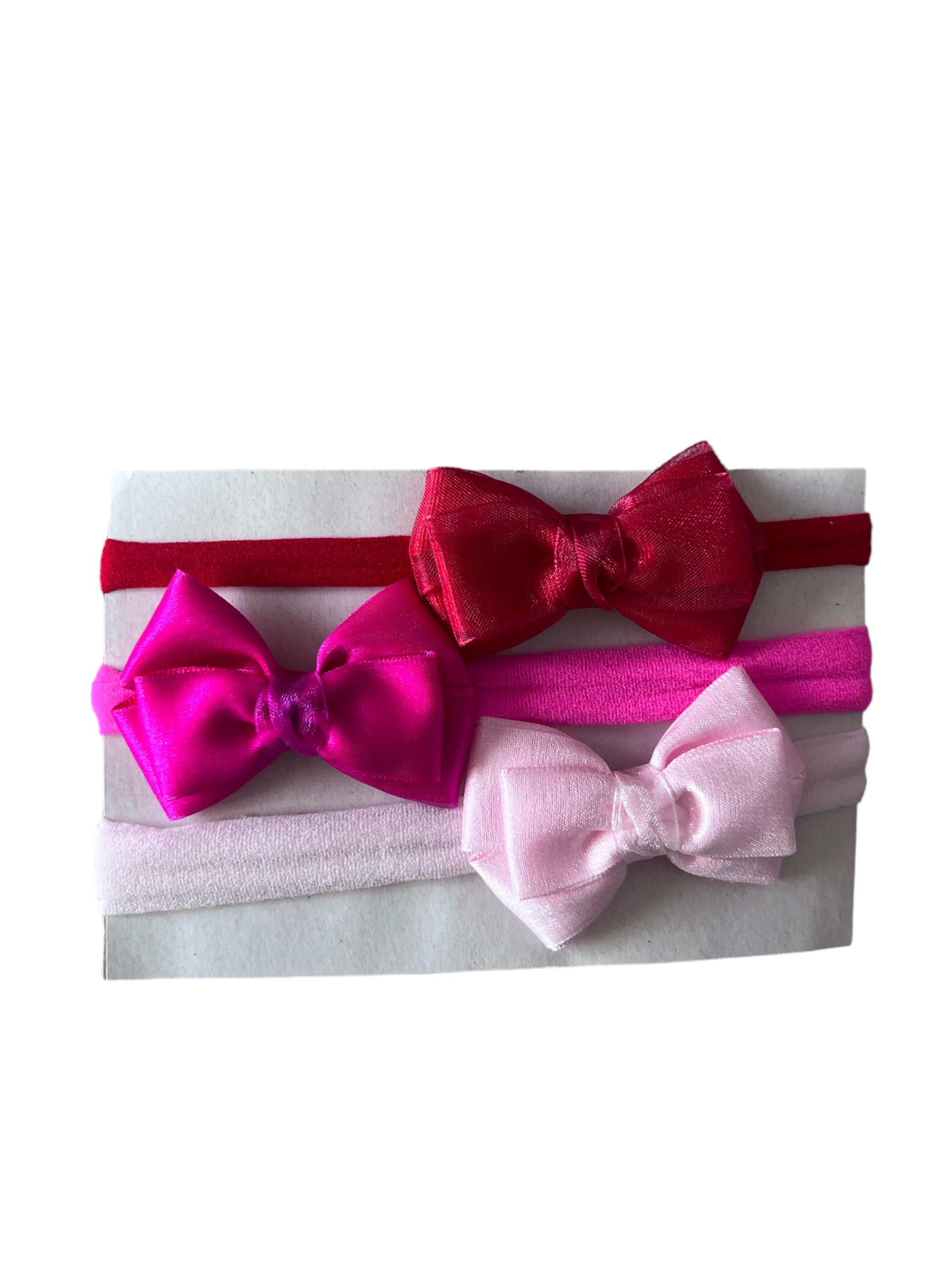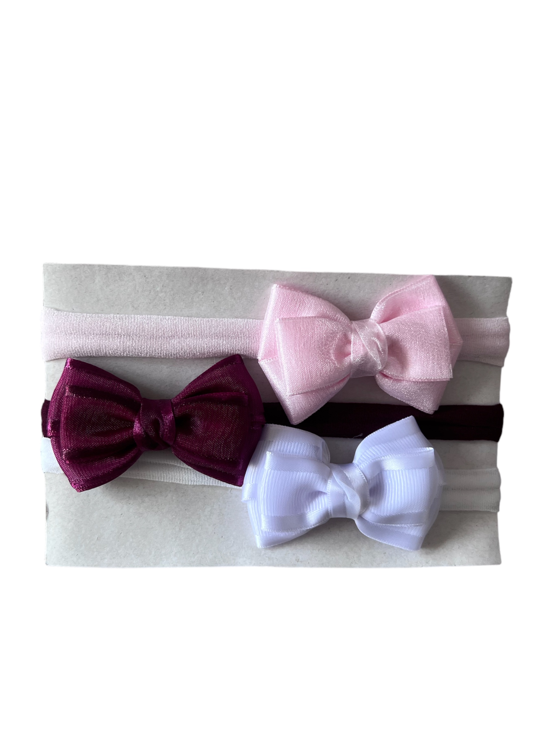 Cartela composta por 3 laços tamanho médio com acabamento meia calça.