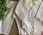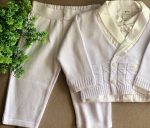 Conjuntinho masculino composto de body com casaquinho (unificado) + calça. Look 100% algodão, e perfeito para eventos como batizado ou casamento.