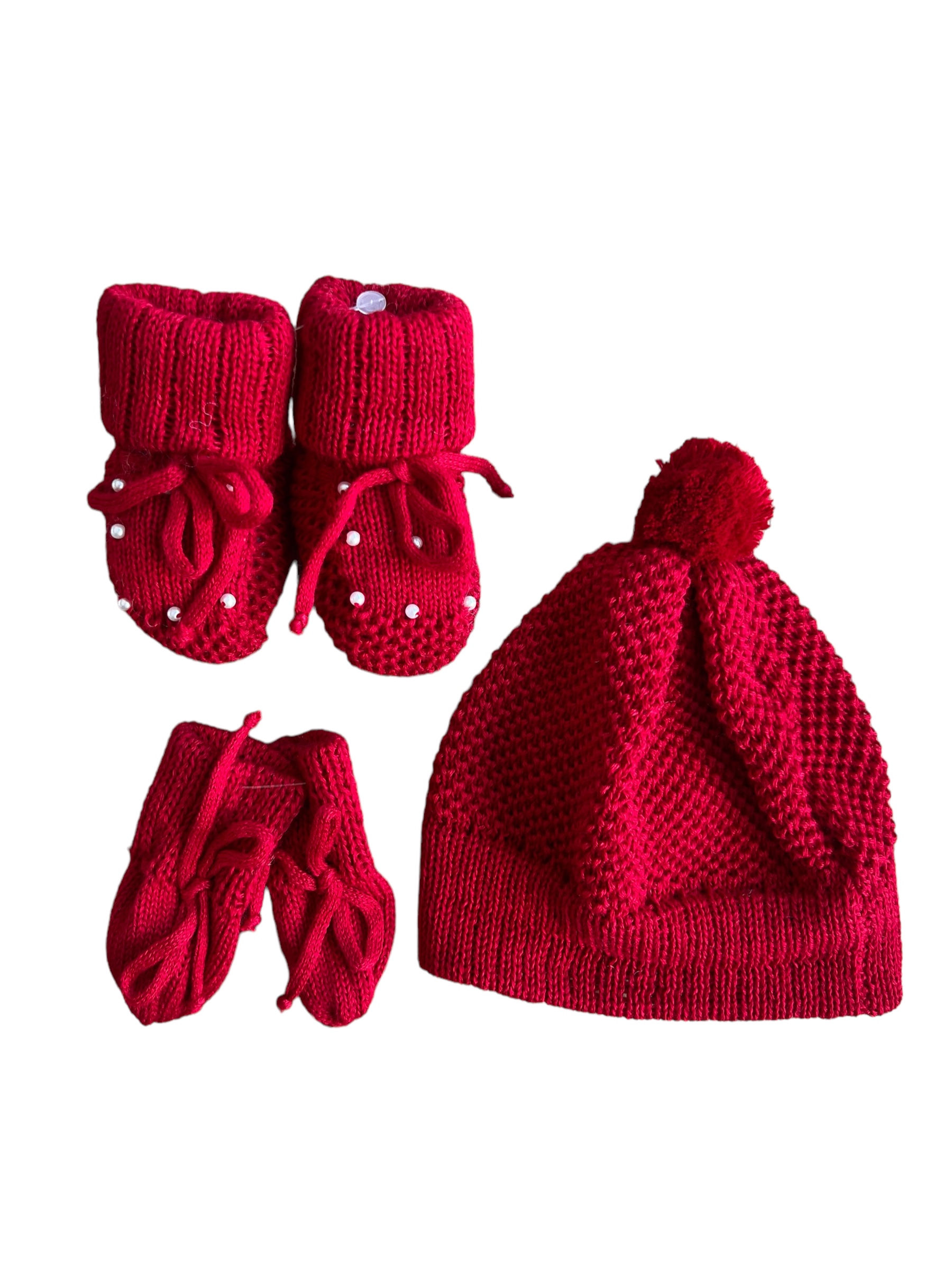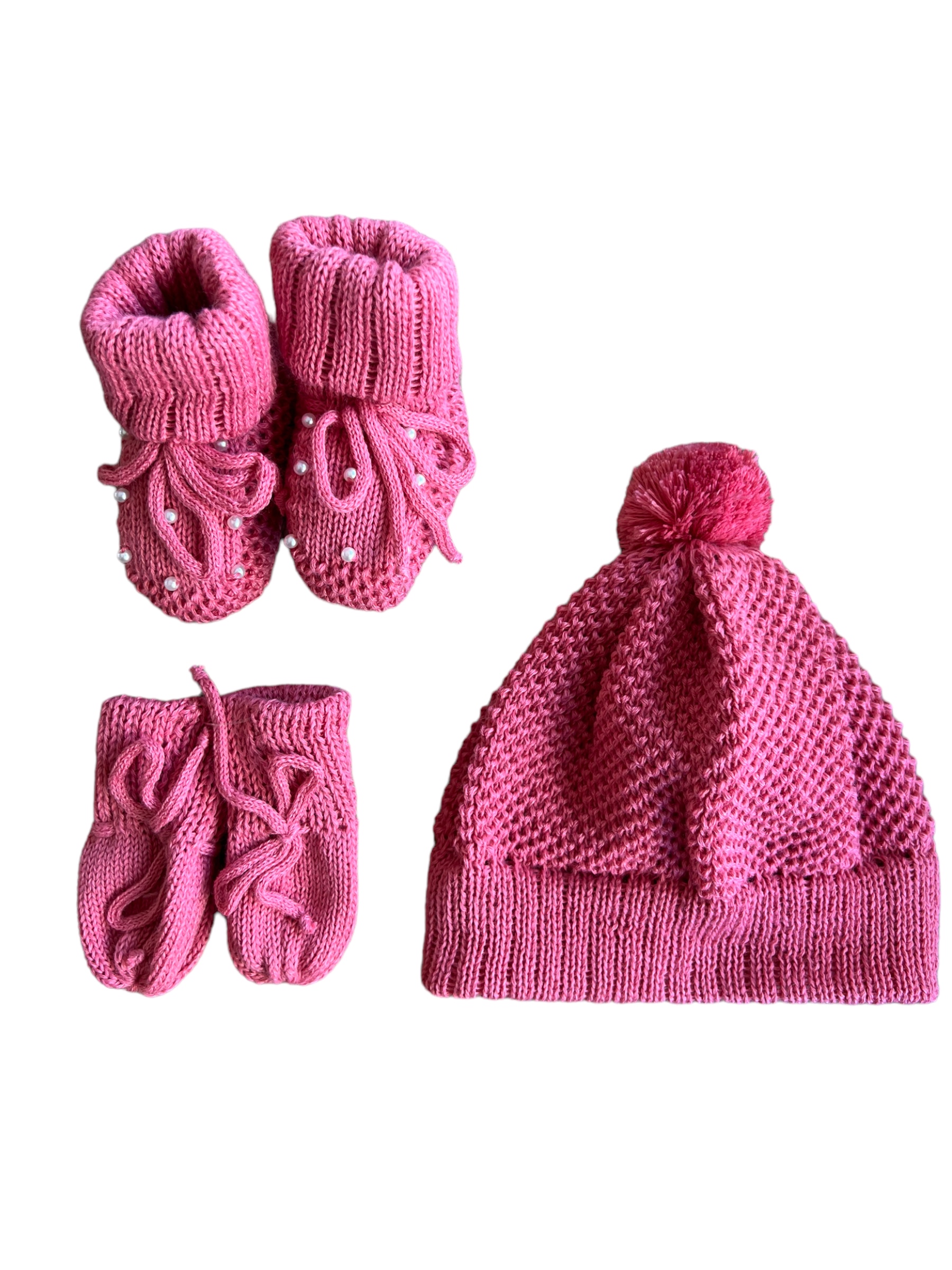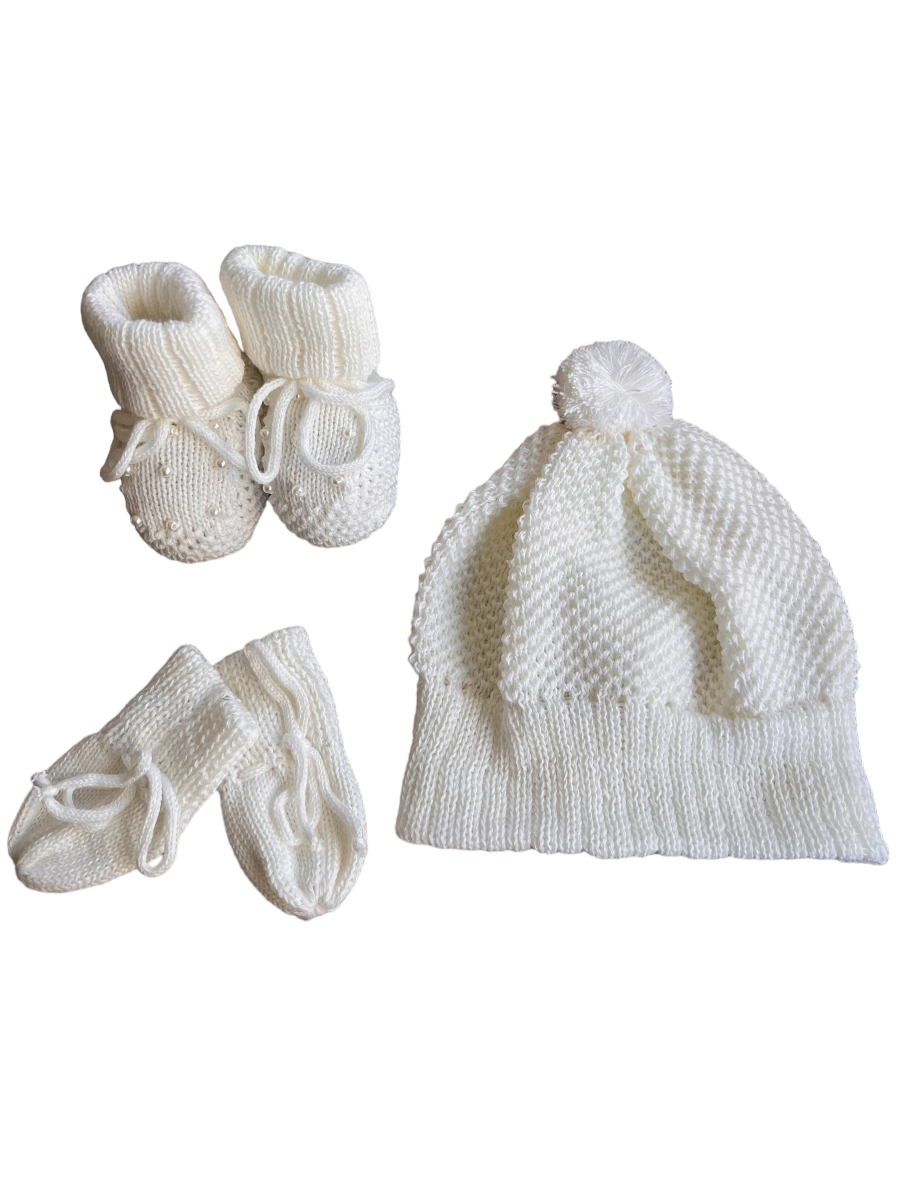 Kit sapatinho + luvinha + touca com pompom em linha.Opção com e sem pérolas no sapatinho de acordo com a cor escolhida.