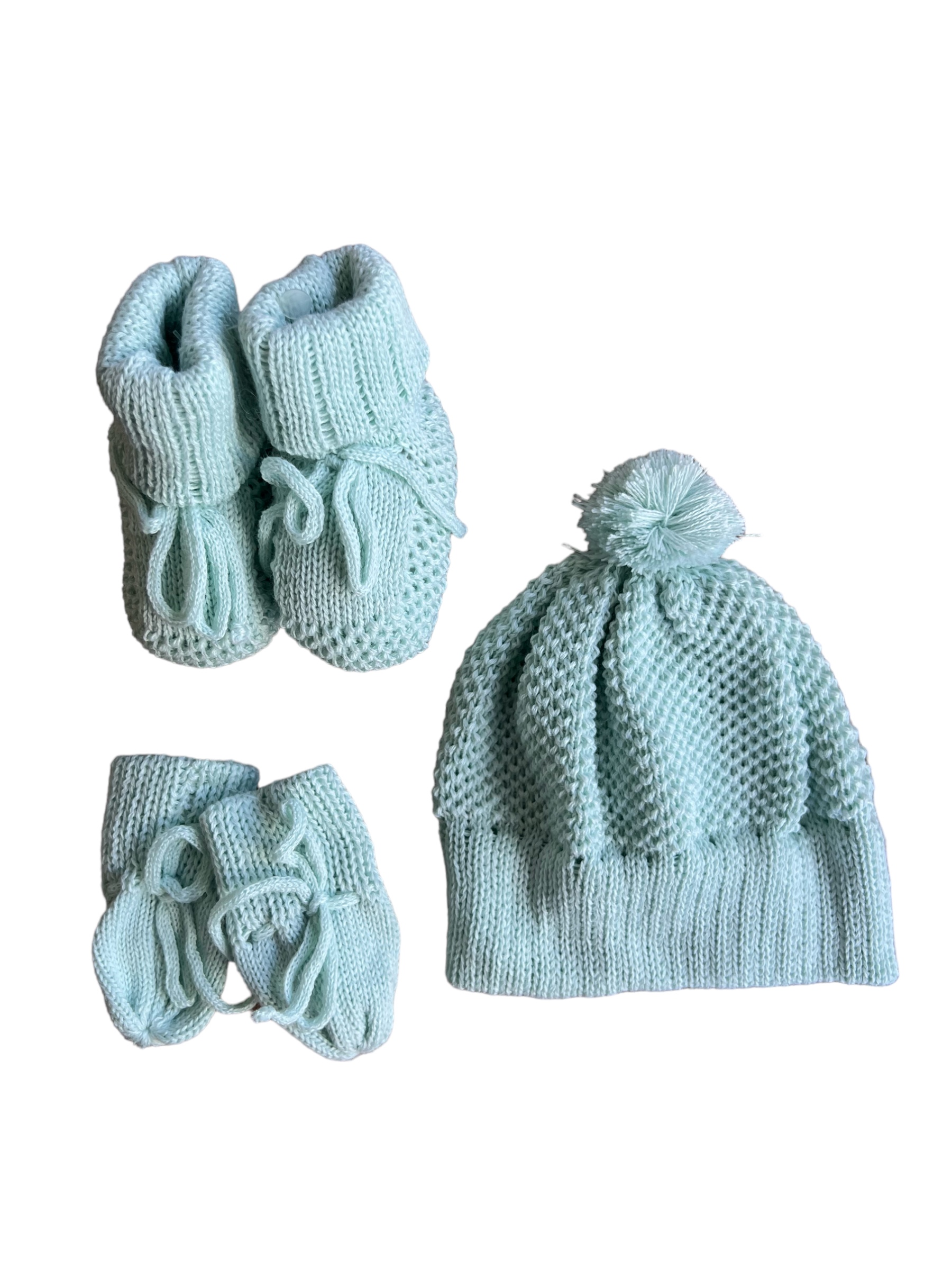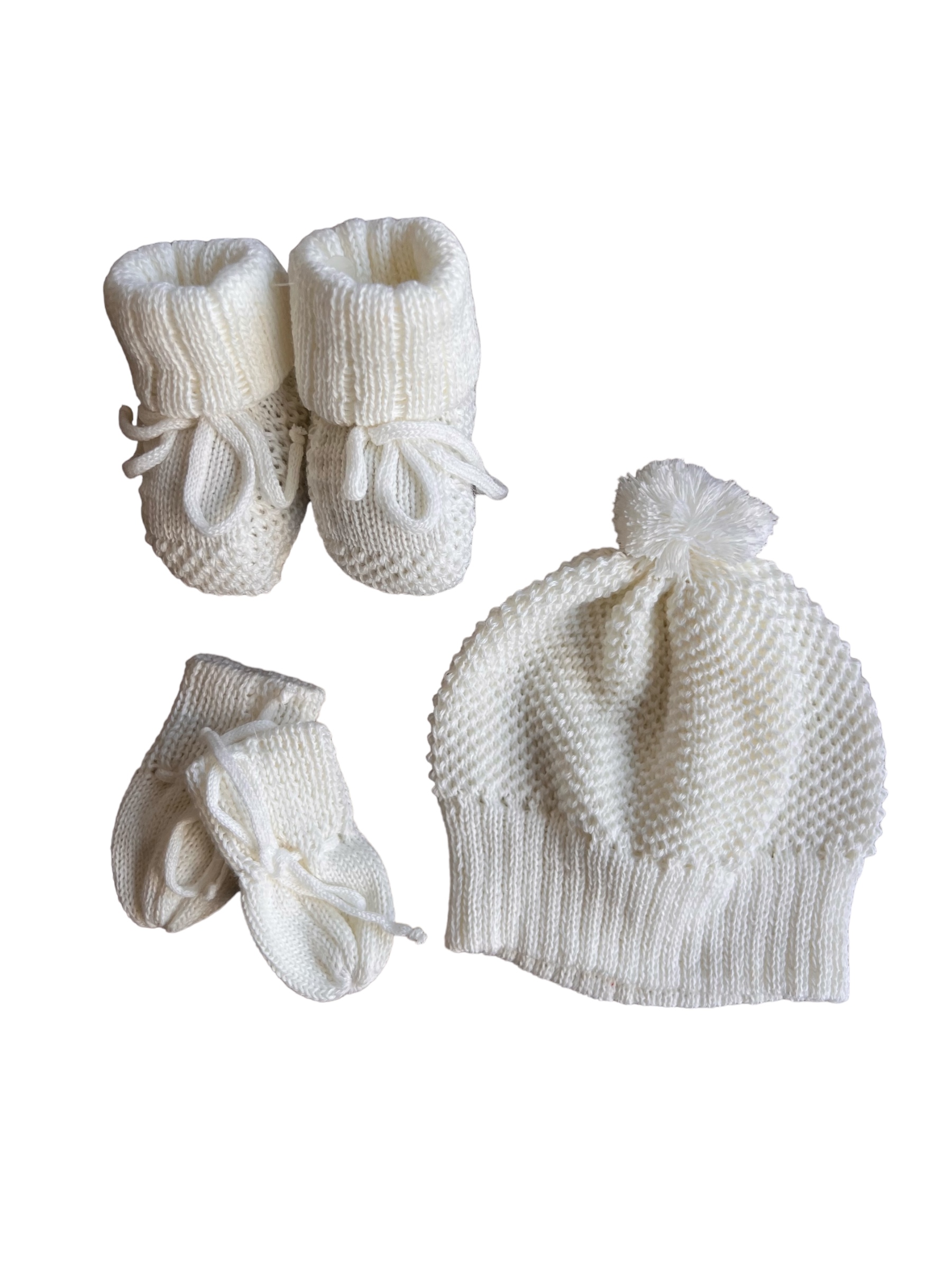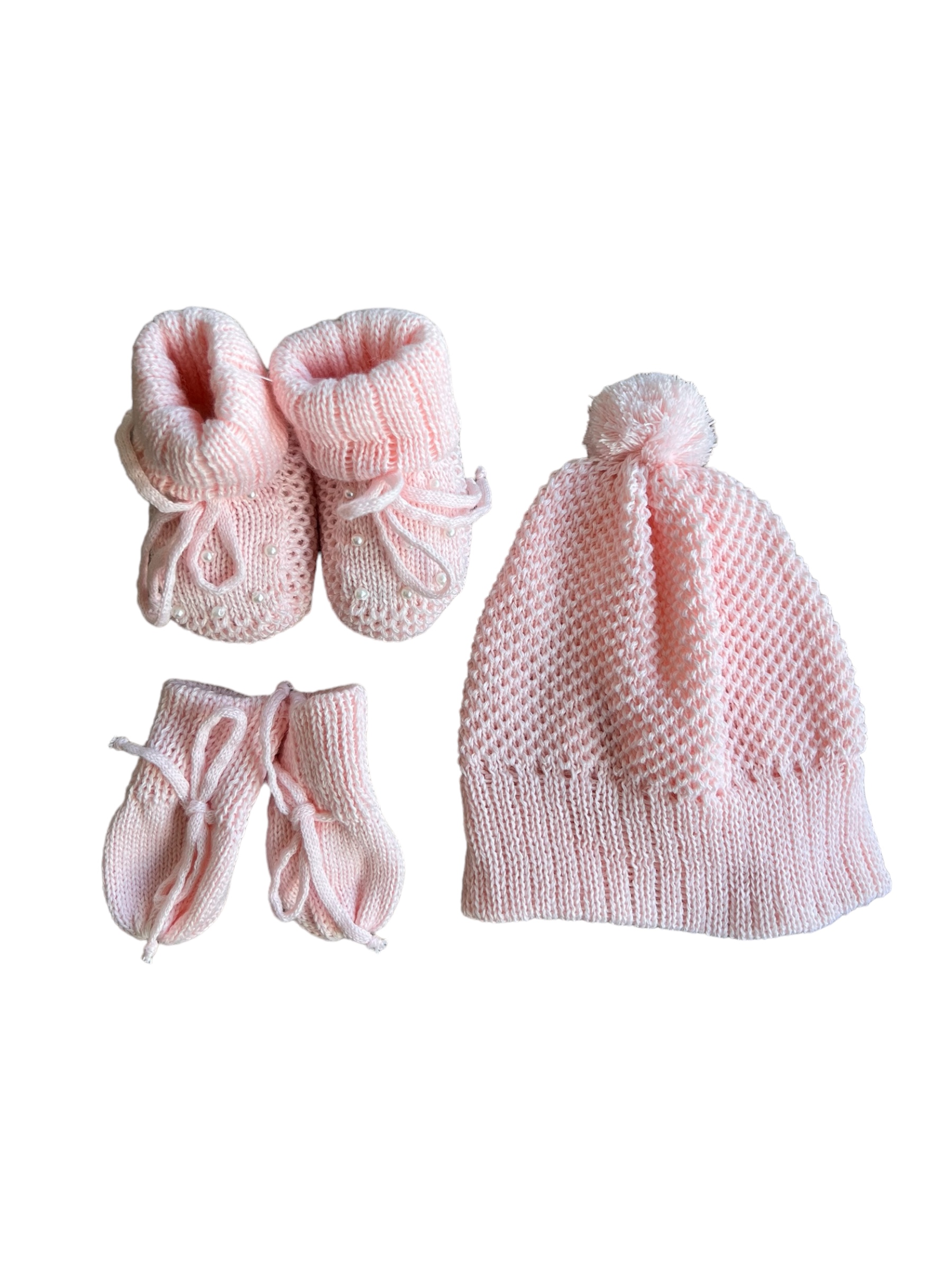 Kit sapatinho + luvinha + touca com pompom em linha.Opção com e sem pérolas no sapatinho de acordo com a cor escolhida.