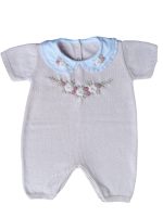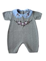 Macacão curto (romper) bordado flores à mão com manga curta e gola fixa bordada também à mão.
