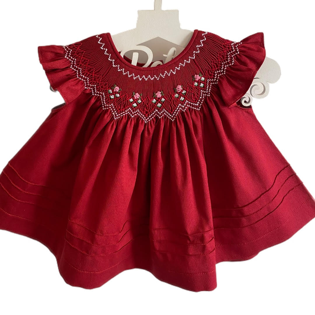 Vestido 100% algodão com bordado casa de abelha na cor vermelha.